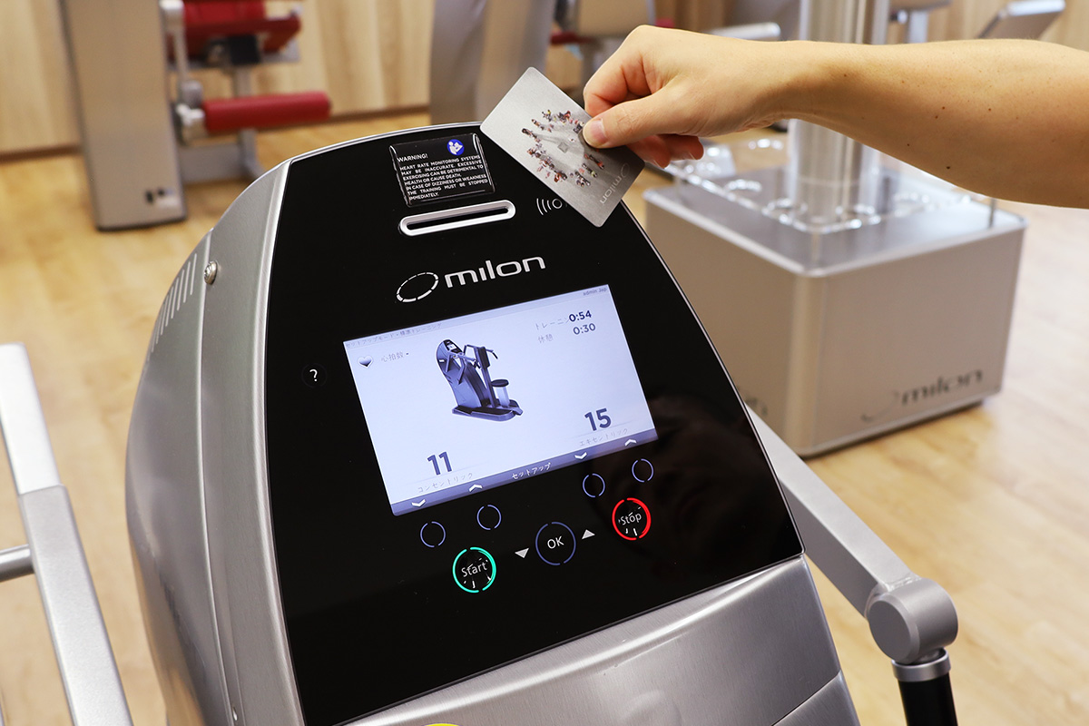 体型、筋力、トレーニング情報を全てMILONシステムに登録します。カードをかざすだけで自分に合ったセッティングで簡単にマシン操作ができ、アプリからはトレーニング情報を参照できます。ひとりひとりに合った、効果的なトレーニング計画を立てることが可能です。