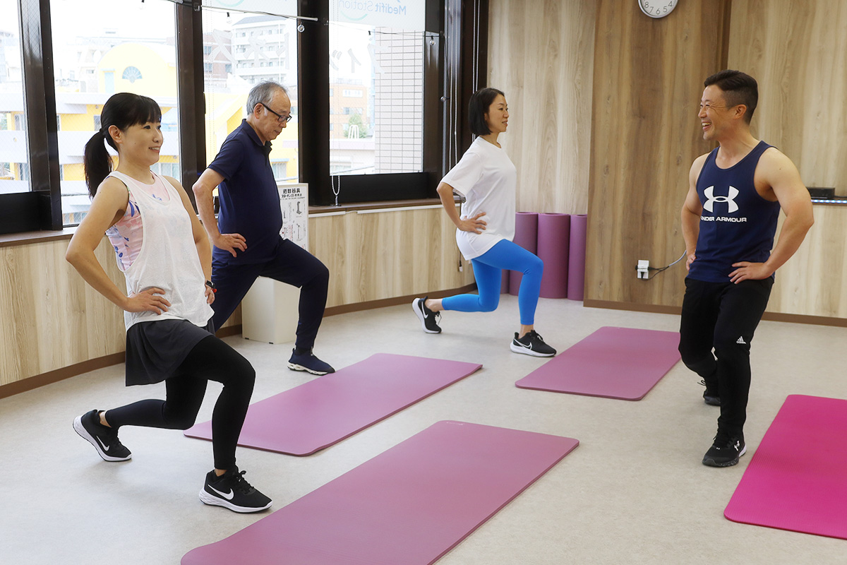 ストレッチや骨盤コンディショニングなど、手軽に始められるメニューがそろっています。グループレッスンは予約不要ですので、お時間のある時にいつでもご参加いただけます。